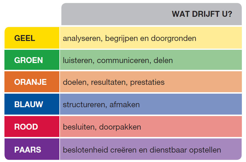 Deze zes drijfveren zullen uitgebreid aan bod komen tijdens een eerste reguliere sessie Management Drives. Een reguliere sessie Management Drives levert u het volgende op:
